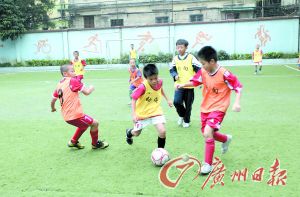 廣州市海珠區(qū)后樂園街小學的學生在訓練踢足球(資料圖片)