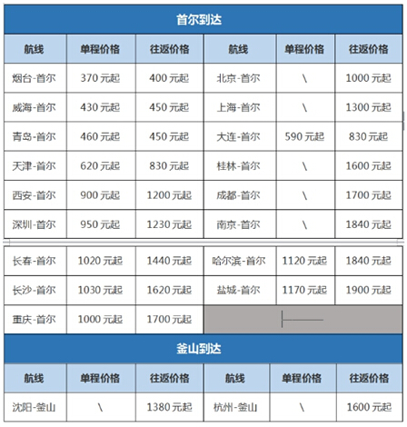 本次機(jī)票促銷活動的航線分別由北京、上海、沈陽、杭州、桂林、成都、南京、哈爾濱、鹽城、煙臺、威海、青島、大連、天津、西安、深圳、長春、長沙、重慶等多個(gè)國內(nèi)城市出發(fā),目的地為韓國首爾與釜山。