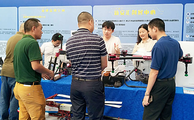 展區(qū)云集行業(yè)大咖、前沿科技產(chǎn)品,充分展示寶安雙創(chuàng)工作開(kāi)展的盛況及成果。天鷹兄弟M12多旋翼植保無(wú)人機(jī)、D10多旋翼植保無(wú)人機(jī)和TY-787單旋翼植保無(wú)人機(jī)亮相寶安分會(huì)場(chǎng),展示農(nóng)業(yè)無(wú)人機(jī)領(lǐng)域創(chuàng)新成果。