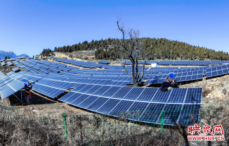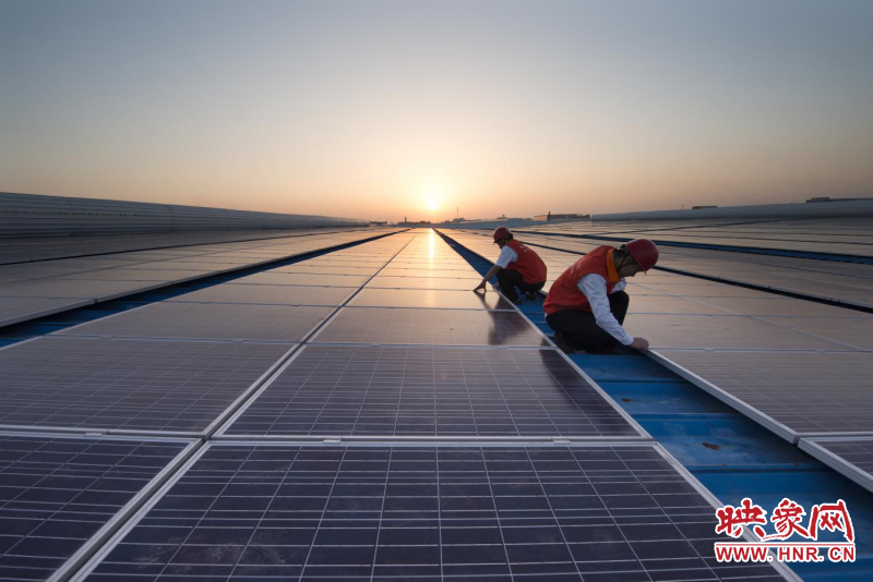 國網(wǎng)河南電力員工檢查光伏發(fā)電板 河南電力供圖