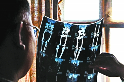 大夫查看鄭鋸腿之前醫(yī)院給他拍攝的X光片
