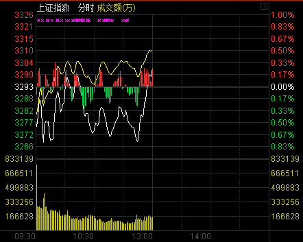 午盤:滬指漲0.25%重新站上3300點(diǎn) 創(chuàng)業(yè)板漲近2%