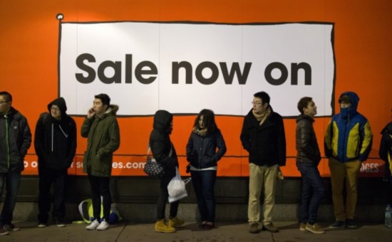 當?shù)貢r間12月26日,英國倫敦,消費者在哈洛德百貨商場外,等待商場開始營業(yè)。