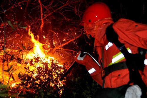 武警涼山森林支隊(duì)官兵在奮力撲火。新華社發(fā)(程雪力攝)