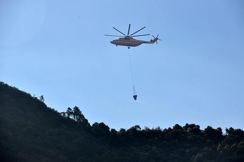 2月16直升機(jī)赴火場(chǎng)實(shí)施吊桶滅火作業(yè)。新華社發(fā)(程雪力攝)