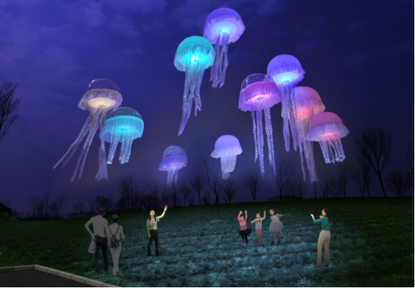 造型燈光也是本屆音樂燈光節(jié)的另一大看點。令人充滿想象力的“夜空水母”,將海底世界的“水母”元素重新設(shè)計,用led燈光體現(xiàn)海底水母的變化效果,將水母燈光引入夜空中,呈現(xiàn)自由翱翔的場景;溫馨甜蜜的“浪漫玫瑰園”像是一條無邊際的銀河,璀璨奪目而又引人無限感嘆,在如此浪漫的場景中表達(dá)愛意,想必丘比特也會為之祝福;塔高18米的“魅力金字塔”,通過燈光的變化,表現(xiàn)魅力的埃及文化,體驗異域風(fēng)情的燈光秀;一望無際的“花燈海洋”,像是隱藏著無數(shù)動人的故事,營造燈光節(jié)的濃厚氛圍……