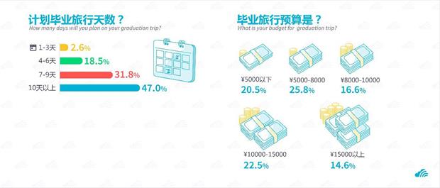 不同于80后,95后學(xué)生群體更注重旅行體驗(yàn),在旅行開銷上面花費(fèi)更多預(yù)算。調(diào)查結(jié)果顯示,超過(guò)78% 的學(xué)生將畢業(yè)旅行規(guī)劃為7-10天的長(zhǎng)線旅行,愿意花更多的時(shí)間去體驗(yàn)旅行,而不是走馬觀花看景點(diǎn)。其中37.1%的同學(xué)將畢業(yè)旅行的預(yù)算設(shè)為10000元以上;美食、購(gòu)物、藝術(shù)展等深度體驗(yàn)項(xiàng)目成為95后旅行消費(fèi)中的重點(diǎn)。