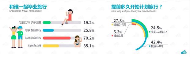 在旅行行為方面,95后學(xué)生群體的出行方式并非無(wú)節(jié)制消費(fèi),反而更注重出行的性價(jià)比,善于提前規(guī)劃行程,提前做好旅行攻略。根據(jù)調(diào)查顯示,70.2%的學(xué)生希望畢業(yè)旅行能與同學(xué)一起自由行,但仍有35%的同學(xué)選擇獨(dú)自旅行,向人生另外一個(gè)階段邁進(jìn)。在預(yù)訂機(jī)票方面,有24.5%的大學(xué)生提前12周就開始“緊盯”機(jī)票價(jià)格走勢(shì),適時(shí)購(gòu)買低價(jià)機(jī)票。而根據(jù)天巡此前針對(duì)全球出境游客的預(yù)定周期調(diào)查發(fā)現(xiàn),中國(guó)普通游客預(yù)定周期僅僅提前40天。而95后出境旅行預(yù)定提前了8-12周,說(shuō)明了95后大學(xué)生旅行出行方式越來(lái)越成熟,出境度假概念越來(lái)深化。