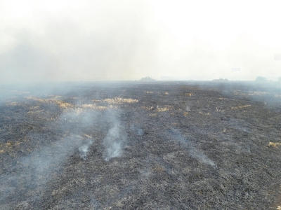據(jù)本報記者目測:淮河北岸、淮河大橋東側(cè)的麥茬地,過火面積近百畝。其上空因滾滾濃煙彌漫,天空暗了;因煙嗆無法落在枝頭的鳥兒,凄慘地叫著。