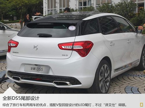 全新DS5獨(dú)特的尾廂造型綜合了旅行車(chē)和兩廂車(chē)的優(yōu)點(diǎn),搭配V型回旋設(shè)計(jì)的LED尾燈、精巧的睿黑色擾流板以及嵌入后保險(xiǎn)杠內(nèi)的賽車(chē)式扁平鍍鉻雙排氣管,視覺(jué)感受更加整體。采用鏡面鉆石切割技術(shù)的雙叉式運(yùn)動(dòng)輪轂,不僅提升了外觀的整體品質(zhì)感,也為全新DS5添加了更多Coupe跑車(chē)基因。