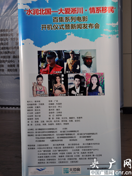據(jù)悉,淅川博翰旅游文化發(fā)展有限公司受中共淅川縣委、縣政府、縣委宣傳部、縣文廣新局、縣旅游局等單位的委托,籌拍首部為反映淅川“南水北調(diào)、大愛(ài)淅川、移民精神”的電影《移民村官》。劇組特邀請(qǐng)中央電視臺(tái)電影頻道、國(guó)務(wù)院臺(tái)灣事務(wù)辦公室九州文化中心導(dǎo)演廣龍執(zhí)導(dǎo)本片,國(guó)家二級(jí)演員李江、香港中文大學(xué)藝術(shù)系研究生李佳穎等多名實(shí)力派演員聯(lián)袂出演。