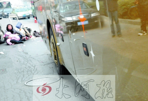 昨天中午12時,記者趕到事發(fā)現(xiàn)場,只見道路中間的機(jī)動車道上有幾攤血跡,在路旁的一個垃圾車?yán)锶又患诎紫嚅g的棉襖,棉襖上有斑斑血跡。肇事大巴車和被撞壞的電動車已經(jīng)被警方拉走,小女孩的尸體也已經(jīng)被家屬拉走。