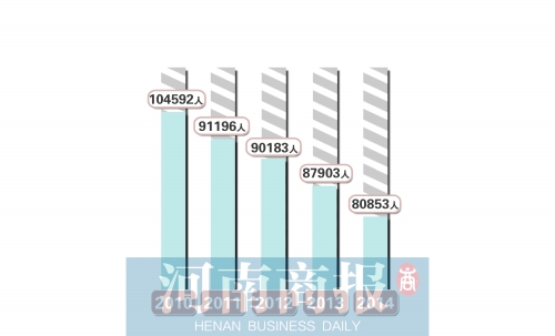 2010年,我省藝考考生數(shù)量為104592人,達(dá)到歷史最高值;2011年明顯降溫,全省藝術(shù)類(lèi)考生比2010年減少約1.3萬(wàn)人;2012年,我省藝考考生減少至90183人;2013年報(bào)考人數(shù)又減少了2000多人。