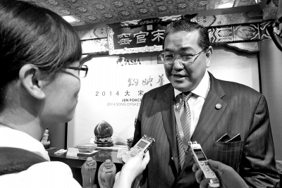 昨天下午3時(shí)許,論壇結(jié)束。泰國(guó)前副總理素拉杰走出會(huì)場(chǎng),穿過大宋官窯展廳時(shí),被媒體攔下群訪,并回答了記者的提問。