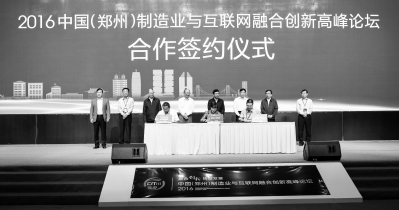 9月28日,2016中國(鄭州)制造業(yè)與互聯(lián)網(wǎng)融合創(chuàng)新高峰論壇合作簽約儀式在鄭州國際會展中心舉行。本報記者聶冬晗攝