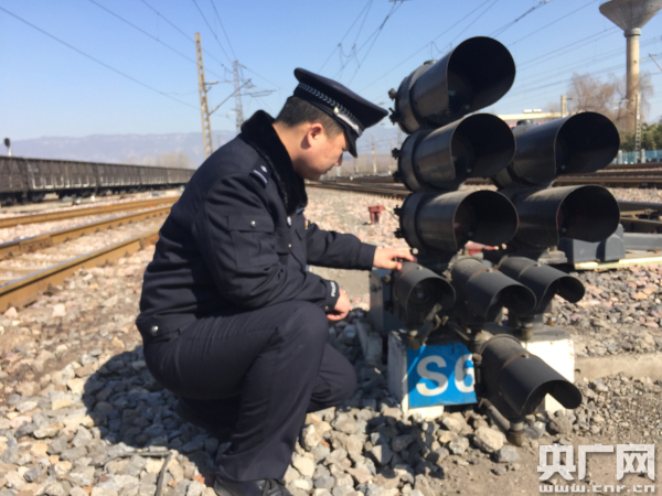 民警李遠(yuǎn)亮檢查信號設(shè)備是否正常