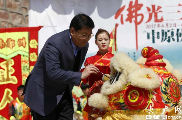 開幕式現(xiàn)場,鞏義市市委常委、政法委書記、公安局局長陳兆甲點睛金獅,鞏義市小關(guān)鎮(zhèn)黨委書記白東升發(fā)言,參加廟會的兩名商戶代表亦發(fā)言表示要誠信經(jīng)營。鞏義市市委常委、統(tǒng)戰(zhàn)部部長賀傳偉宣布中原佛山文化廟會開幕。近兩萬游客從四面八方趕來,見證中原佛山千年古廟會在水道口村重現(xiàn)盛事。