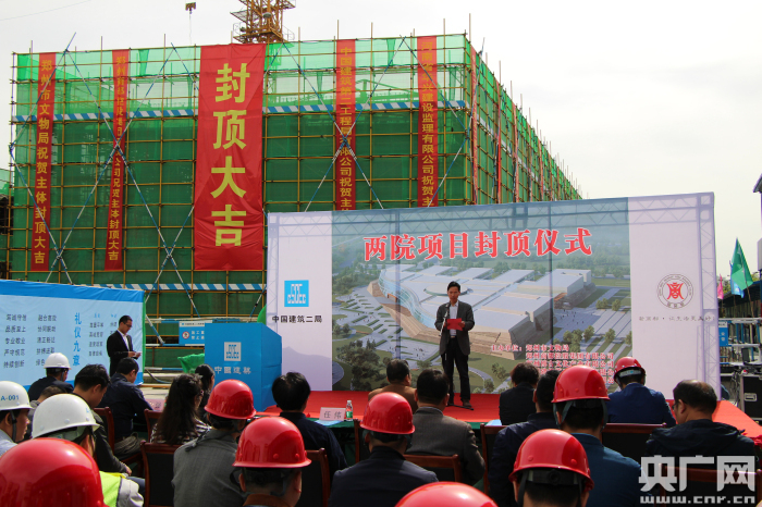 儀式上,中原分公司經(jīng)理崔彥波代表中建二局向前來(lái)參加封頂儀式的領(lǐng)導(dǎo)及嘉賓表示了熱烈的歡迎和誠(chéng)摯的感謝,他說(shuō),在各級(jí)政府的關(guān)心下,在鄭州商都控股集團(tuán)的大力支持下,在河南省華興建設(shè)監(jiān)理有限公司,新縣昌榮、四川匯通、河南德匯勞務(wù)公司以及全體員工的共同努力下,項(xiàng)目正式迎來(lái)封頂,這標(biāo)志著項(xiàng)目建設(shè)進(jìn)入新的、更加緊張的階段。他同時(shí)表示,將繼續(xù)秉持“過(guò)程精品,質(zhì)量重于泰山”的理念,在認(rèn)真落實(shí)揚(yáng)塵治理各項(xiàng)要求,堅(jiān)持綠色文明施工的同時(shí),搶抓工期,確保安全、優(yōu)質(zhì)、高效地完成“兩院”項(xiàng)目建設(shè)任務(wù)。
