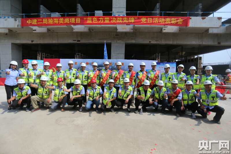央廣網(wǎng)河南分網(wǎng)消息 七月十日上午,頂著夏日驕陽(yáng),冒著嚴(yán)冬風(fēng)雪,瀚海美尚項(xiàng)目迎來(lái)了建設(shè)的階段性勝利——匠心精筑、耀世封頂;項(xiàng)目黨支部借著喜封金頂這個(gè)大好時(shí)機(jī),開(kāi)展了“藍(lán)色力量 決戰(zhàn)先鋒”表彰會(huì),中原分公司生產(chǎn)副總吳小志、項(xiàng)目經(jīng)理鄭利及全體管理人員、勞務(wù)公司、甲方監(jiān)理共同參加。