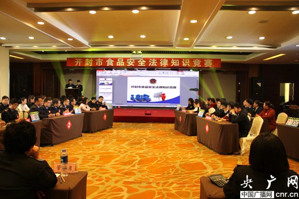 央廣網(wǎng)河南分網(wǎng)12月1日消息 (記者 胡曉輝)11月28日下午,由開封市食品藥品監(jiān)督管理局組織開展的開封市食品安全法律知識競賽在開封中州國際飯店舉行,11支代表隊參賽,食品生產(chǎn)經(jīng)營企業(yè)代表、行業(yè)協(xié)會代表、消費者代表、執(zhí)法人員、檢測技術(shù)人員等近300人現(xiàn)場觀看了當天的競賽。11支參賽隊圍繞國家食品安全法律法規(guī)進行知識競答,經(jīng)過激烈角逐,開封市食品藥品檢驗所最終獲得一等獎,開封市順河回族區(qū)代表隊、通許縣代表隊獲得二等獎,開封市禹王臺區(qū)代表隊、開封市祥符區(qū)代表隊、杞縣代表隊獲得三等獎。