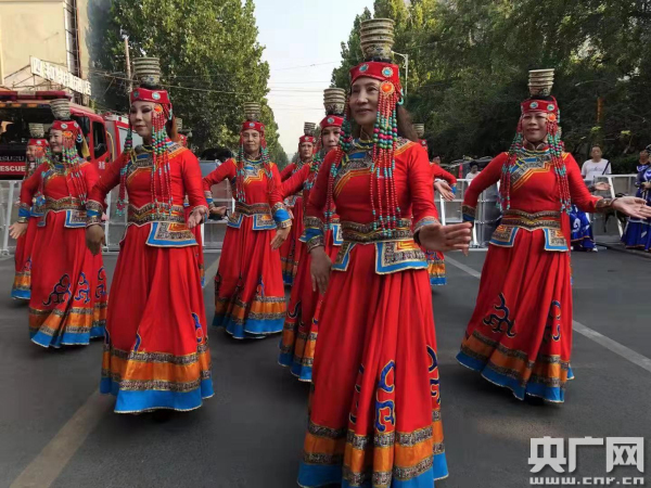 除了形式多樣的歡迎方式,現(xiàn)場(chǎng)群眾還準(zhǔn)備了豐富多彩的文藝演出,杜嶺街道辦事處紅日文化藝術(shù)團(tuán)的演員們身著華麗的蒙古服飾,跳著歡快的蒙古族舞蹈《盅碗筷》,以飽滿的熱情迎接火炬手們的到來(lái)。