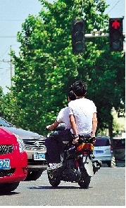 伴隨著“突突突”的摩托聲,騎車男孩稍稍看了一眼穿梭的車流,兩腳蹬地,右手一使勁,摩托車箭一般飛奔出去,這時(shí),由東向西的信號燈顯示為紅燈。