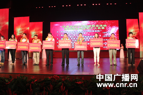 8月22日下午,“許昌市貧困助學(xué)十年總結(jié)表彰暨2011年助學(xué)助業(yè)資金發(fā)放儀式在許昌市許都大劇院舉行。市總工會向100名貧困學(xué)生代表發(fā)放了41.7萬元助學(xué)金,向9名貧困學(xué)生家長共發(fā)放了27萬元救助金。中共許昌市委書記李亞、許昌市人民政府市長張國暉、河南省總工會副主席王永領(lǐng)等領(lǐng)導(dǎo)出席了本次活動。