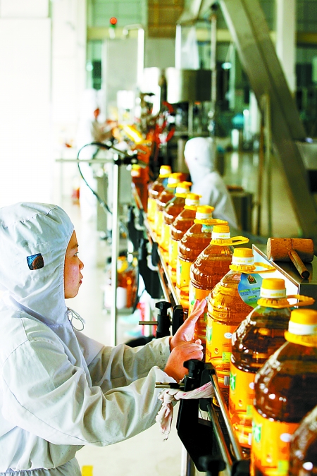 中廣網(wǎng)河南分網(wǎng)消息 據(jù)河南日?qǐng)?bào)報(bào)道:2月13日,在開(kāi)封縣黃龍產(chǎn)業(yè)集聚區(qū)龍大花生食品產(chǎn)業(yè)園內(nèi),工作人員對(duì)花生油制品進(jìn)行檢測(cè)。近年來(lái),該縣已逐步形成集花生種植、花生油壓榨等為一體的產(chǎn)業(yè)鏈,提升了農(nóng)業(yè)產(chǎn)業(yè)化水平。記者 史長(zhǎng)來(lái) 攝