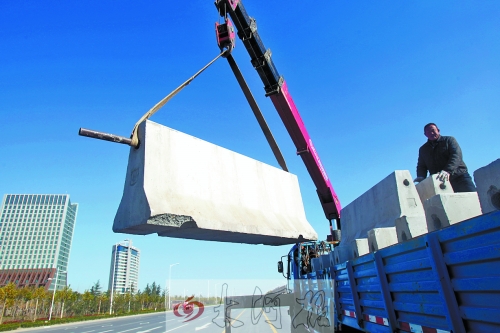 昨日,鄭開大道河師大新聯(lián)學(xué)院(鄭開大道與京港澳高速交叉口東2公里)以東開始鋪設(shè)水泥隔離墩。寬闊的馬路中間每隔15-20米的距離放置一個2米長的水泥墩。采訪時,現(xiàn)場施工負(fù)責(zé)人宋師傅說,此次設(shè)置的隔離墩集中在鄭開大道(鄭州到開封界)的30公里內(nèi),將安裝800多個隔離墩。每個隔離墩高90厘米,重1.5噸。