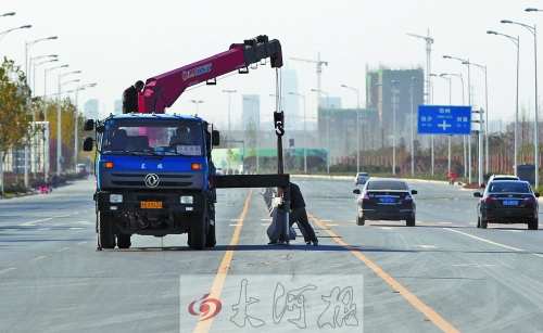 昨天,鄭開大道開始設(shè)置隔離墩
