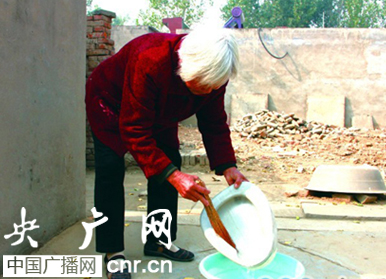 由于家里沒(méi)有能掙錢的人,唯一的收入就是種地。她留下生活必需的糧食,把余糧賣掉換錢給婆婆看病。即使這樣,也遠(yuǎn)遠(yuǎn)解脫不了生活中的困境。為此,趙枝妮開(kāi)始到村附近的工廠打零工。年逾六旬的趙枝妮每天一路小跑,奔波在家、田地、路上和工廠里。地里的農(nóng)活、一日三餐、料理家務(wù)、照顧婆婆……生活的艱辛壓得趙枝妮喘不過(guò)氣來(lái),但她從沒(méi)有說(shuō)過(guò)一聲苦和累。因常年高負(fù)荷勞累,腰椎盤突出、高血壓、肩周炎等“毛病”都找上了趙枝妮,她曾多次昏倒在田地里、爐灶前。但17年過(guò)去了,97歲的婆婆在趙枝妮的照顧下,依舊頭腦清醒,眼不花,耳不聾。趙枝妮的親娘也已經(jīng)90多歲,身體不好,她只能帶著深深的愧疚,趁中午在村里打工的兒媳回家吃飯時(shí),替她照看婆婆一會(huì),自己急匆匆的趕回娘家去探望老母親。母親體諒枝妮的困難,每次都攆她:“我沒(méi)事,你快回吧,你婆婆跟前離不了人!