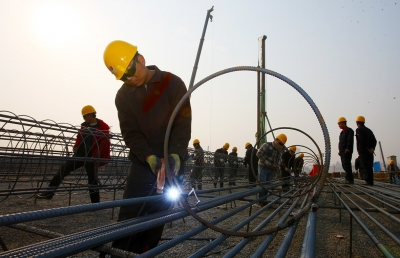 “站在這里的位置是T2航站樓,北邊是飛行區(qū)和第二跑道,南邊是綜合交通換乘中心!眲⑸钲(圖中焊接者)放下手中的電焊活,站在土堆上向四周比劃著,整個鄭州機(jī)場二期工程的輪廓已經(jīng)清晰可見。
