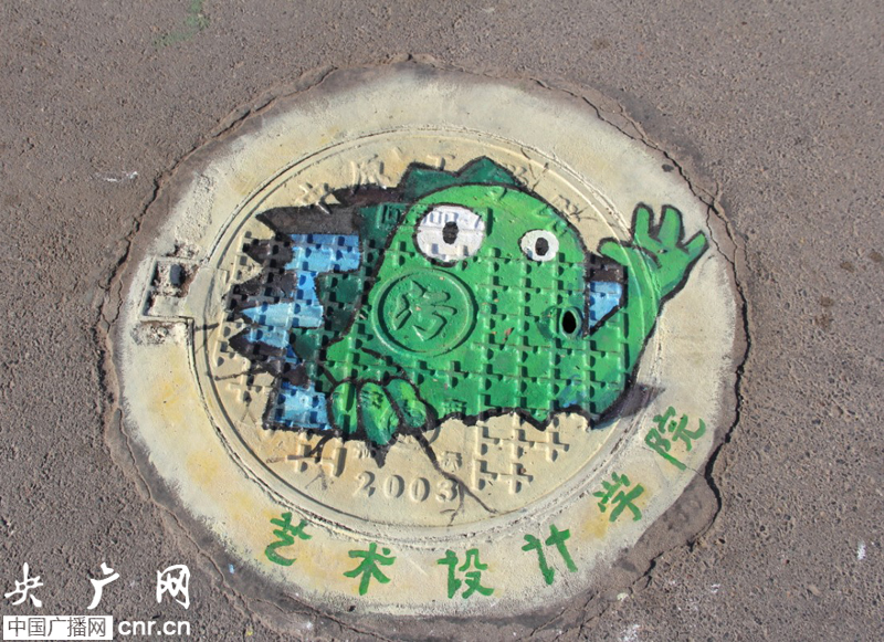 央廣網(wǎng)河南分網(wǎng)消息 具有民族特色的風(fēng)景畫、頗有喜感的卡通人物……這些栩栩如生的畫不是畫在紙上,而是畫在井蓋上。近日,滴水涌泉附近的井蓋不再是單調(diào)的、冷冰冰的鐵質(zhì)外觀,而是在藝術(shù)設(shè)計(jì)學(xué)院學(xué)生的妙筆下變得充滿生機(jī),這些個(gè)性的圖案,幾乎吸引了每一名過往的師生,大家都放慢腳步,細(xì)細(xì)觀察起來,還有不少學(xué)生拿出手機(jī)拍照。