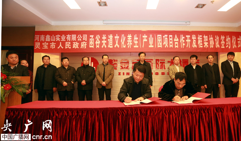 央廣網(wǎng)河南分網(wǎng)消息 12月13日,靈寶市與河南省鑫山實(shí)業(yè)發(fā)展有限公司合作開(kāi)發(fā)的函谷關(guān)道文化養(yǎng)生(產(chǎn)業(yè))園項(xiàng)目協(xié)議簽訂儀式隆重舉行。該市市委副書(shū)記、市長(zhǎng)楊彤代表靈寶市與河南省鑫山實(shí)業(yè)發(fā)展有限公司董事長(zhǎng)朱鐵玉簽約,就“函谷關(guān)道文化養(yǎng)生產(chǎn)業(yè)園”合作事項(xiàng)達(dá)成初步協(xié)議。靈寶市委書(shū)記喬長(zhǎng)青,市委副書(shū)記楊海讓,市人大常委會(huì)主任張社平,市政協(xié)主席張成寶等四大班子領(lǐng)導(dǎo)出席簽約儀式。儀式由市委副書(shū)記楊海讓主持。