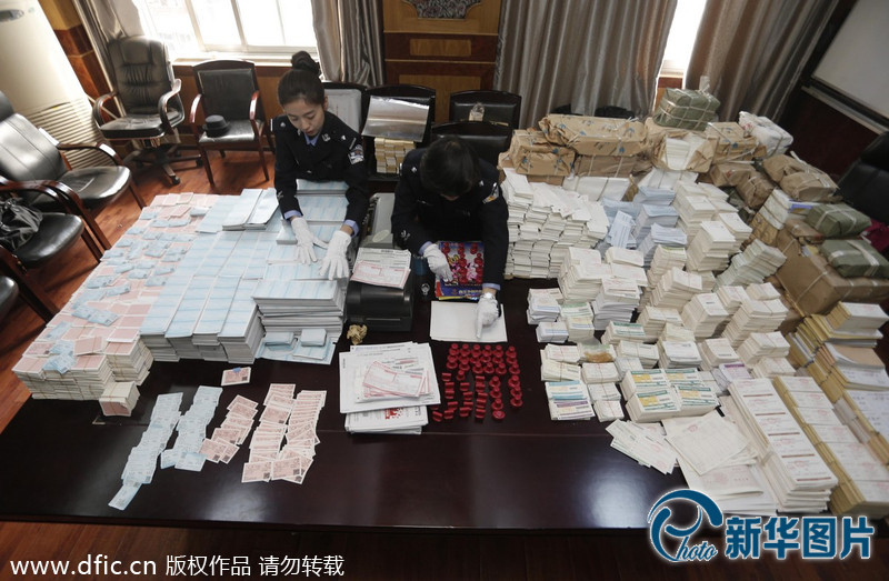央廣網(wǎng)河南分網(wǎng)消息 據(jù)中國新聞網(wǎng)報道:2014年1月13日,武漢鐵路警方對外宣布,歷時2個月成功偵破全國最大系列制販假火車票案,連續(xù)搗毀3個制販假火車票窩點,收繳高仿真假火車票百萬余張(已制成全國各地假火車票282張);大量假國稅、地稅發(fā)票;裝有假火車票待發(fā)物流快件12件、已發(fā)快遞單74張;以及偽造公章56枚,打印機、電腦、裁紙機、打孔機、壓票機等一批作案工具。抓獲犯罪嫌疑人8人,起獲一大批制販假各種票據(jù)等工具。