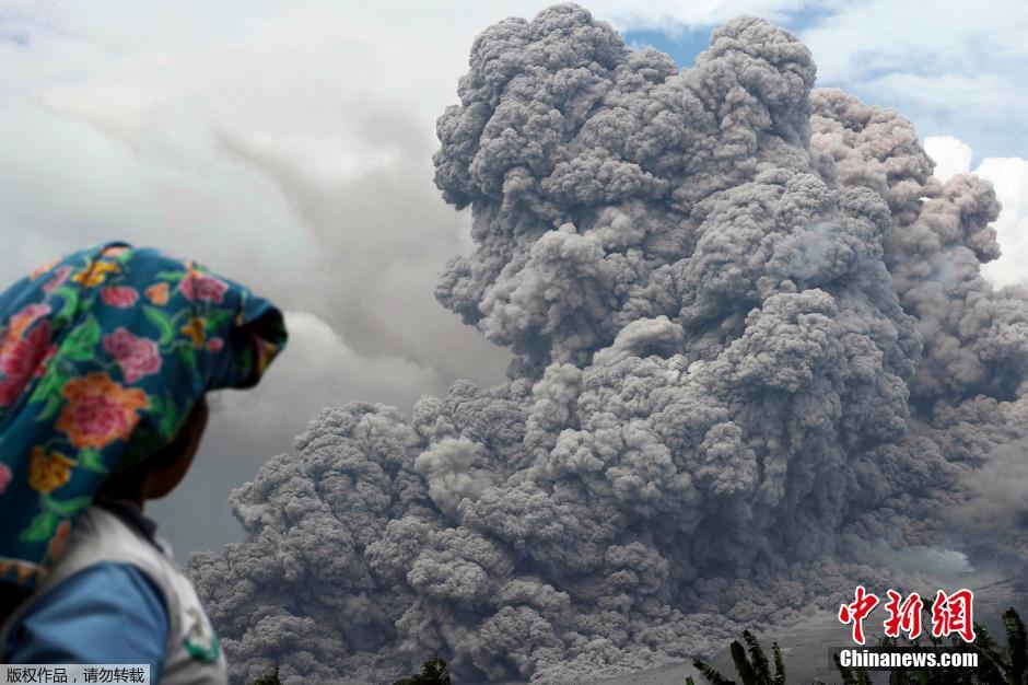 據(jù)中新網(wǎng)報道:當?shù)貢r間2014年1月15日,印度尼西亞西部的錫納朋火山持續(xù)噴發(fā),不斷向外噴涌濃煙和火山灰。