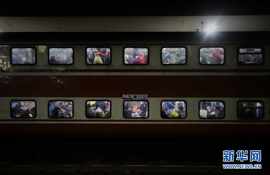 1月16日,旅客在廣州火車站等候列車啟動。一扇扇車窗,就像一個個斑斕的電視屏幕,上演著不同的故事。當天凌晨0:49,從廣州火車站始發(fā)的春運首趟臨客列車——廣州至常德的K9286次列車,滿載著2647名旅客順利踏上歸家的旅途。2014年全國春運從1月16日開始,客流量預計將達36.2億人次。新華社記者 邢廣利攝