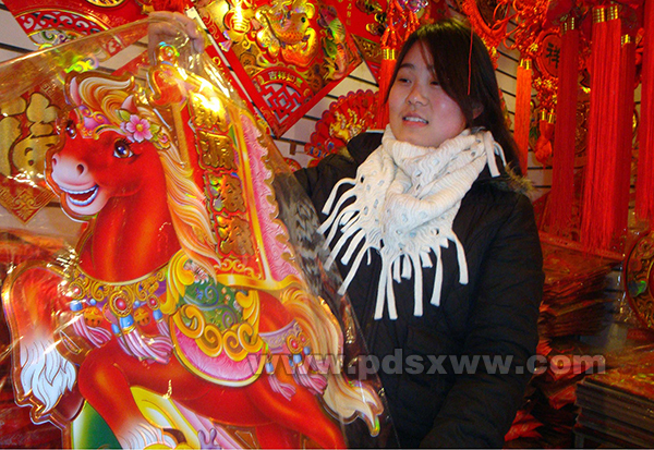 很多商家也圍繞“馬”字大做文章:2014年祝愿大家馬到成功、馬壯人強、馬上發(fā)財……(記者 張鵬 攝)
