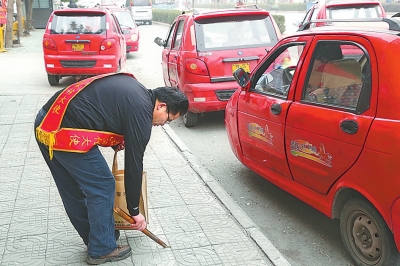 出租車集中地是他撿煙頭的重點(diǎn)地方。