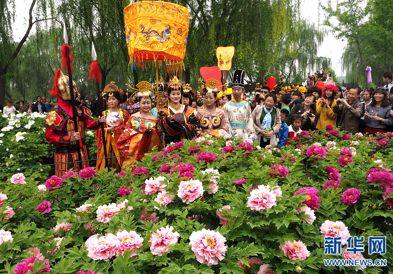 央廣網(wǎng)河南分網(wǎng)消息 據(jù)新華網(wǎng)河南頻道報(bào)道:當(dāng)日,是清明小長(zhǎng)假的第二天。河南省洛陽(yáng)市隋唐城遺址植物園的牡丹園內(nèi),舉行了一場(chǎng)“武皇賞花”大型藝術(shù)表演,為游客模擬再現(xiàn)了當(dāng)年武則天清明踏青、游園賞花的盛大場(chǎng)景。市民和游客們跟隨“武皇”在園中游玩,觀賞國(guó)色天香,品味歷史文化。