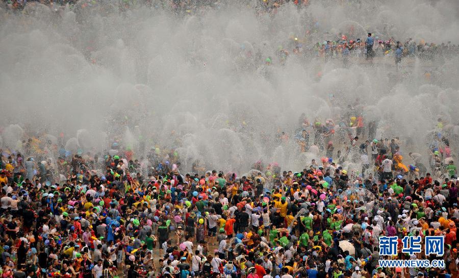 央廣網(wǎng)河南分網(wǎng)消息 據(jù)新華網(wǎng)報(bào)道:4月15日,數(shù)萬名當(dāng)?shù)厝罕姾陀慰驮谠颇鲜∥麟p版納州景洪市潑水廣場(chǎng)上潑水狂歡。當(dāng)日是2014年西雙版納潑水節(jié),也是傣歷1376年新年節(jié)系列活動(dòng)的最后一天,數(shù)萬名當(dāng)?shù)厝罕姶┥瞎?jié)日盛裝,和外地游客一起在云南省西雙版納傣族自治州景洪市互相潑水,互祝吉祥、幸福、健康。潑水節(jié)是傣族人民送舊迎新的傳統(tǒng)節(jié)日,已有上千年歷史。(新華社記者 藺以光 攝)