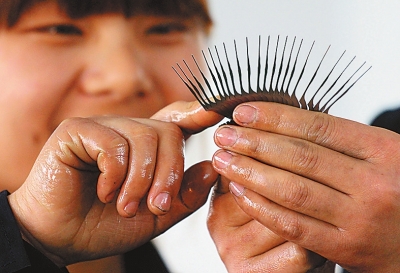 4月28日,在三門峽產(chǎn)業(yè)聚集區(qū)的鑫宏精密紡織器材有限公司,90后青年李真真在檢查高檔精密織針。 孫猛攝
