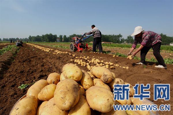 央廣網(wǎng)河南分網(wǎng)消息 據(jù)新華網(wǎng)河南頻道報(bào)道:5月6日,商水縣城關(guān)鄉(xiāng)瓦房店村“農(nóng)超對(duì)接”蔬菜基地的200余畝土豆開(kāi)始采收,80萬(wàn)斤土豆將按市場(chǎng)需求逐批收獲上市。該基地采用三層薄膜覆蓋、有機(jī)蔬菜管理模式栽培種植,上市早、口感好,每畝收入可達(dá)7000余元,成為拉動(dòng)當(dāng)?shù)剞r(nóng)民致富的“金蛋蛋”。
