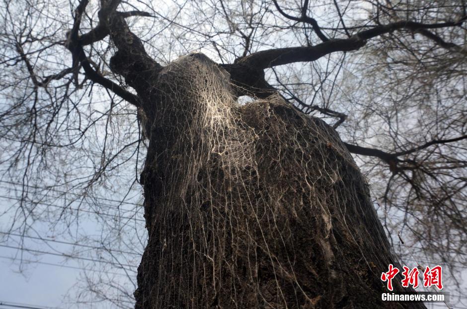 鄭州百棵國槐遇“國槐尺蛾” 不見綠葉只見白絲