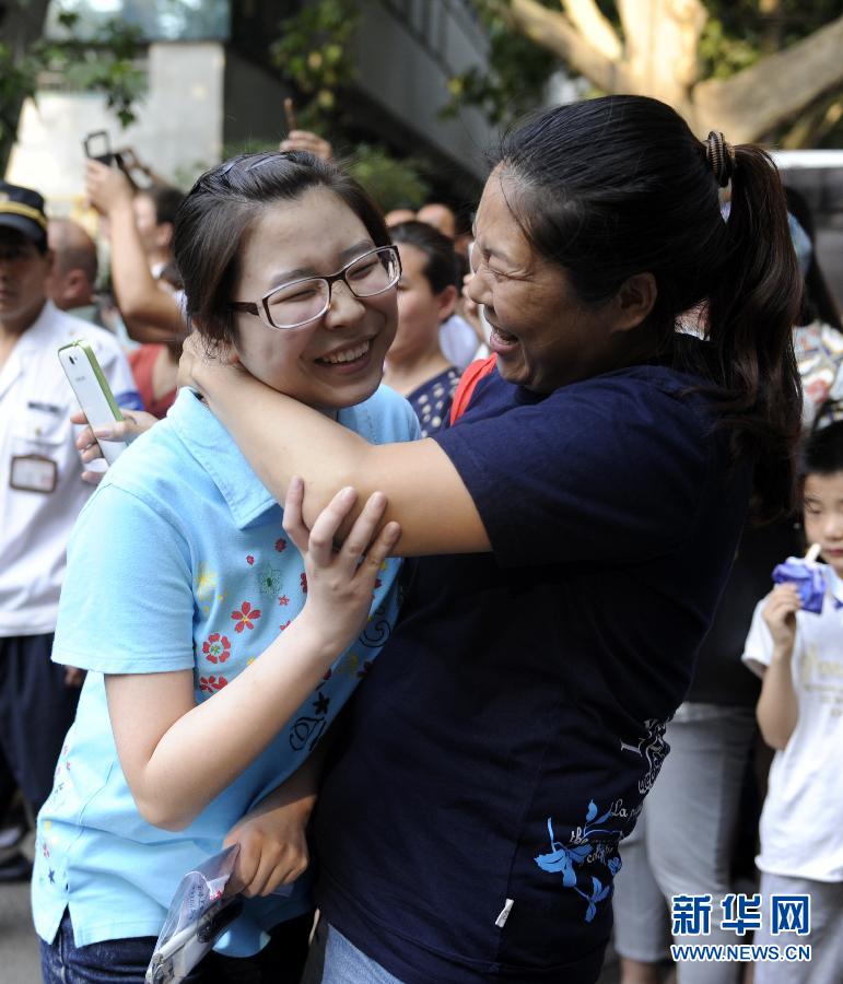 央廣網(wǎng)河南分網(wǎng)消息 據(jù)新華網(wǎng)報(bào)道:6月8日,在鄭州回民中學(xué)考點(diǎn),一名考生與家長(zhǎng)在高考結(jié)束后擁抱慶祝。當(dāng)日,全國(guó)部分地區(qū)2014年高考結(jié)束。據(jù)統(tǒng)計(jì),今年全國(guó)高考報(bào)名人數(shù)為939萬(wàn)人,較2013年增加27萬(wàn)人,增幅3%。全國(guó)高校計(jì)劃招生698萬(wàn)人,其中本科363萬(wàn)人,高職(?)335萬(wàn)人。(新華社記者 李博 攝 )