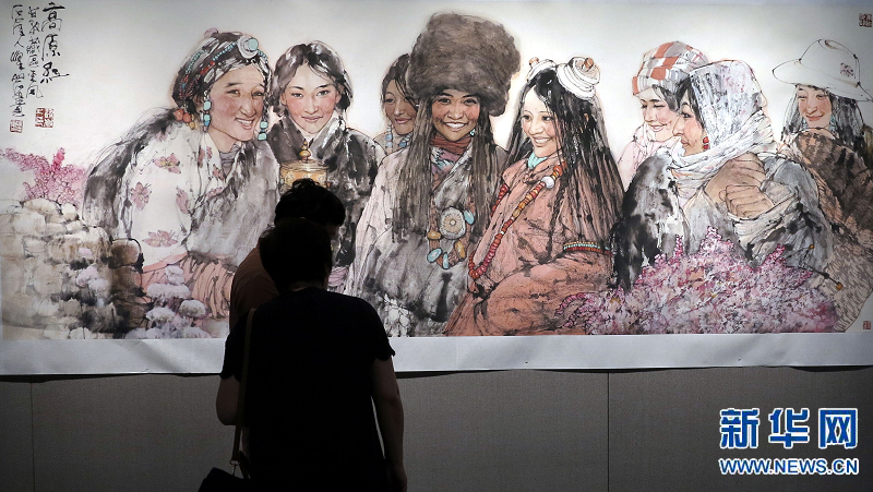6月15日,觀眾在欣賞梁巖的作品《高原紅》。