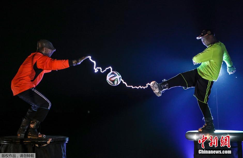 隨著這幾年技術(shù)的改進,王增祥用于制造閃電的特斯拉線圈設(shè)備日趨完善。人身著特制的鐵衣站在上面表演各種炫酷的動作,與閃電共舞。為了讓球員的腳尖與球之間能產(chǎn)生更美的電弧,鞋面上也要貼一層特殊的材料。他還對足球做了特殊處理——給足球也穿上一層“鐵衣”,皮質(zhì)的足球才不至于在閃電中被燒焦。