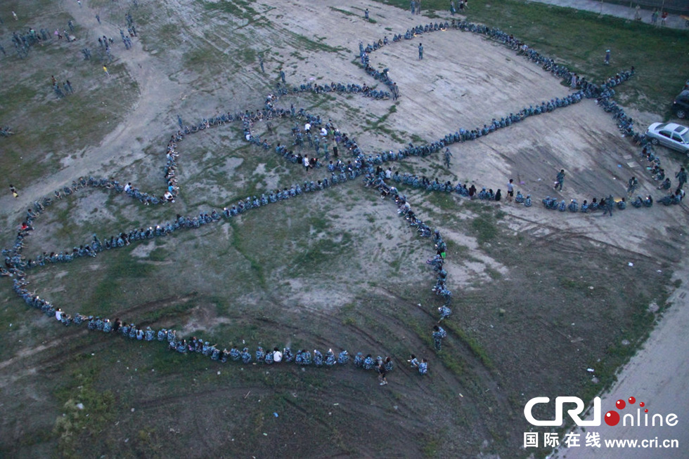 2014年7月2日,長春市某所高校內(nèi)一位同學(xué)發(fā)動近千名同學(xué)向女同學(xué)求愛。同學(xué)們拼湊成巨大的心,一箭穿心等造型,場面十分壯觀。