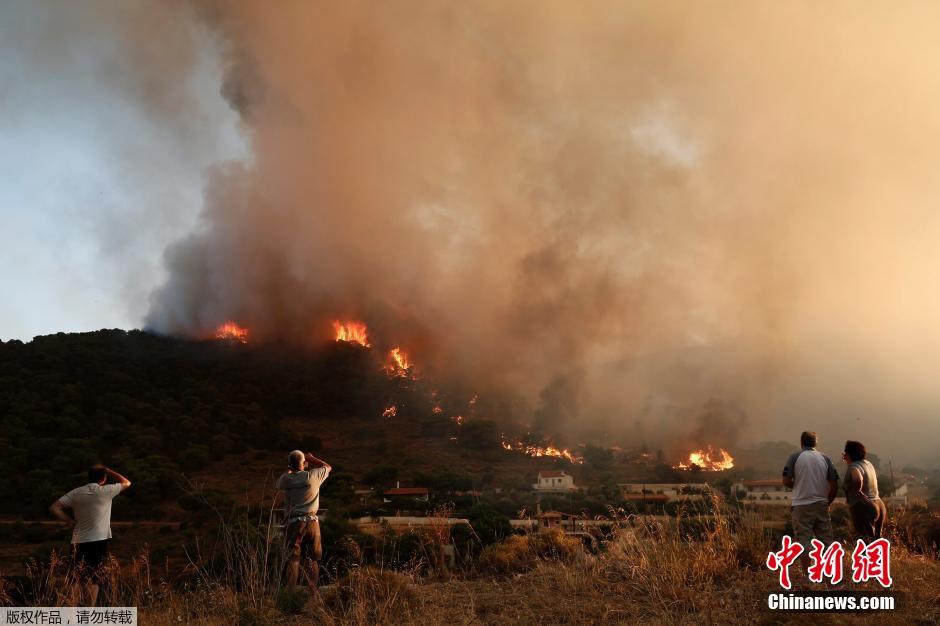 當?shù)貢r間2014年7月12日,希臘雅典西南部的凱拉泰阿鎮(zhèn)發(fā)生山火,現(xiàn)場濃煙密布宛如末世。
