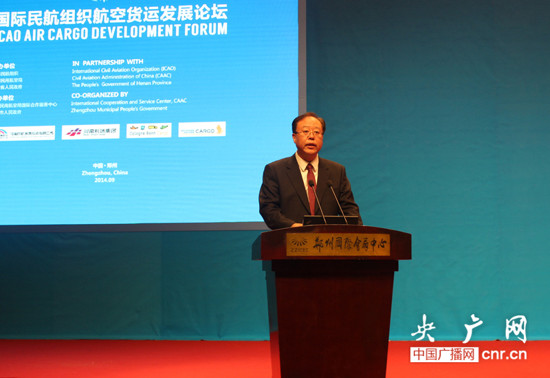 河南省副省長(zhǎng)張維寧致歡迎詞。他說(shuō),2013年3月7日,國(guó)務(wù)院正式批復(fù)了《鄭州航空港經(jīng)濟(jì)綜合實(shí)驗(yàn)區(qū)發(fā)展規(guī)劃(2013~2025年)》,這是全國(guó)首個(gè)上升為國(guó)家戰(zhàn)略的航空港經(jīng)濟(jì)發(fā)展先行區(qū)。河南省將以鄭州機(jī)場(chǎng)為核心打造“鄭州航空港經(jīng)濟(jì)綜合實(shí)驗(yàn)區(qū)”,并將這個(gè)“綜合實(shí)驗(yàn)區(qū)”打造成為中原經(jīng)濟(jì)區(qū)發(fā)展的引擎和國(guó)家內(nèi)陸開(kāi)放高地。與國(guó)際民航組織合作舉辦此次論壇,旨在搭建了一個(gè)與世界交流合作的平臺(tái)。